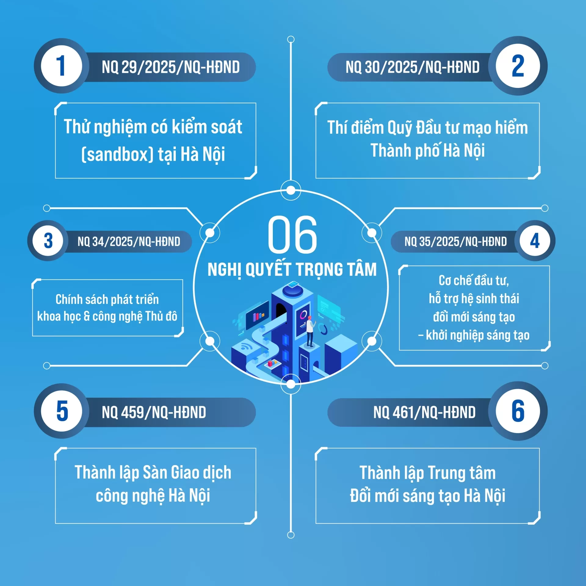 Dưới đây là 6 Nghị quyết của HĐND Thành phố Hà Nội được thông qua ngày 29/9/2025, cụ thể hóa Nghị quyết số 57-NQ/TW và các quy định của Luật Thủ đô 2024 về khoa học, công nghệ, đổi mới sáng tạo và chuyển đổi số: